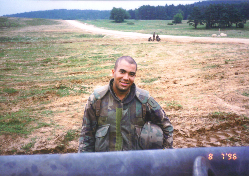 Old school flak vest baby! Endex Hohenfels 1996. So many tracked vehicles maneuvers have made it a mudhole with sporadic patches of grass.