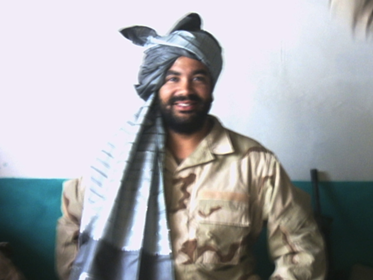 Bearded man, wearing a turban, in a sterilized uniform with a rifle in the background, what do you think this is? It would be easy to misrepresent, but that would take away from all the other truthful stories. This is not a Special Forces soldier, just a former grunt turned speaker monkey having lunch with the locals. When given a gift, it is customary to wear it.