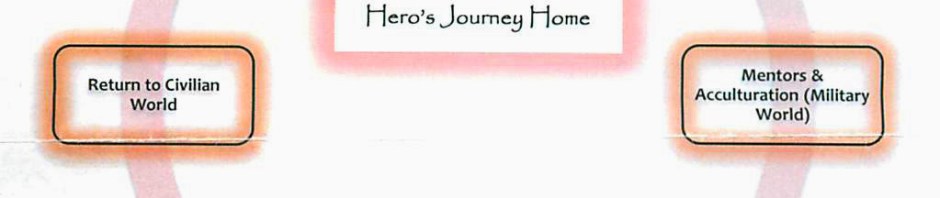 The working theory that we have been working with is that this is a cycle that normal people repeat in their lives. Home is familiar then you go to school which is unknown. Teachers are mentors, get the diploma and return to life after high school. College or the job world is another move from the known to the unknown. These cycles in a sense repeat. For the purpose of the group, we are saying that a military career is a more dramatic cycle than the ones civilians experience and that makes the return to the known, or the journey home, more difficult than the average civilian job change.